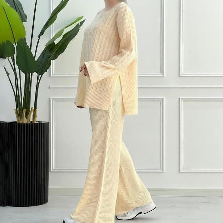 ست بافت بلوز و شلوار زنانه Gloria_Milky مدل 3721